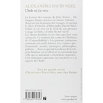 L'Inde où j'ai vécu est le récit du premier voyage d'Alexandra David-Néel en Inde, à l'aube du XXe siècle. La lecture des romans de Jules Verne... De longues heures passées au musée Guimet... Ainsi est née la passion des voyages, et surtout le désir d'Orient, d'Alexandra David-Néel ! L'Inde où j'ai vécu est le récit de son premier voyage en Inde, à l'aube du XXe siècle. Les dieux hindous et les rites qui leur sont consacrés. Le système des castes et l'abolition de " l'intouchabilité ". Les gourous, institution nationale aux mille formes. Les " saints " professionnels : ascètes, mystiques, philosophes, pèlerins... Tout ce qui fait la richesse de la religion hindoue est ici observé et commenté par celle qui se nommait " orientaliste-reporter ". Une initiation captivante aux mystères et à la sagesse de l'Inde.